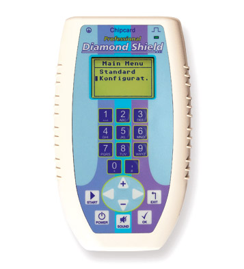 • Ta karta czipowa z jej indywidualnym programem może być używana w domu na Zapperze Diamond Shield IE EMS